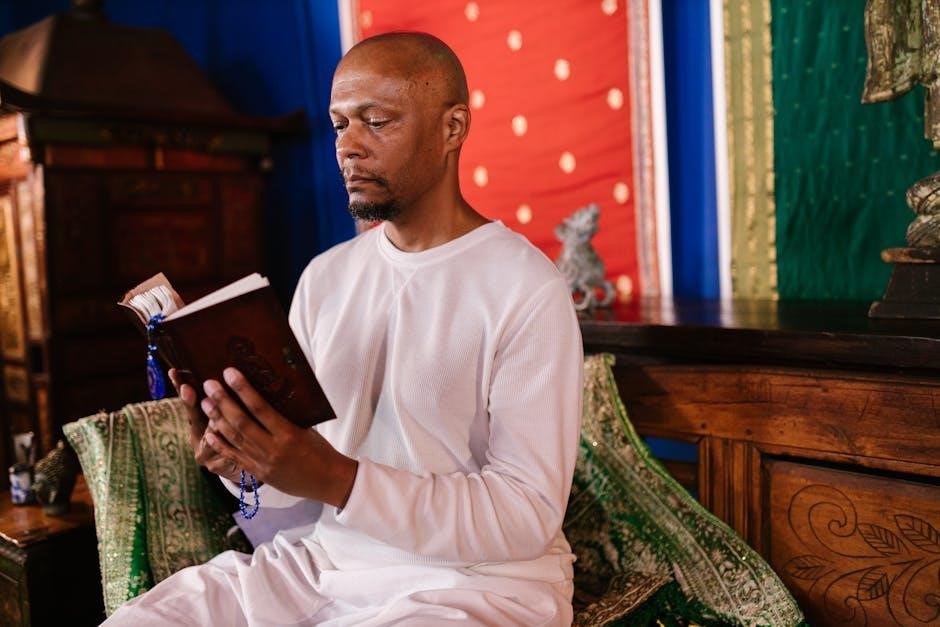 The Red Book draws parallels with sacred texts like the Bible, Upanishads, and Gnostic scriptures, offering a visionary narrative rich in symbolism. Its themes of divine encounter, self-discovery, and transformation echo mystical traditions, positioning it as a modern spiritual text. Jung’s exploration of the collective unconscious aligns with universal mystical experiences, bridging psychology and spirituality. The book’s prophetic tone and symbolic imagery invite readers to reflect on existential questions, much like religious texts, making it a profound resource for seekers of meaning and transcendence in a secular age.