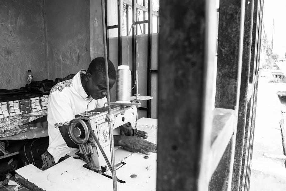 Furthermore, the manual includes detailed explanations of stitch selection, presser foot usage, and needle choices. Troubleshooting sections address common issues like thread breakage, empowering users to resolve problems independently. This manual is designed to build confidence, allowing users to fully utilize the machine’s capabilities and enjoy a seamless sewing experience.